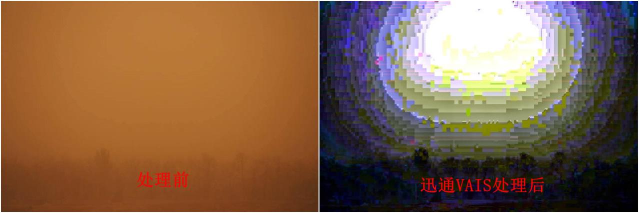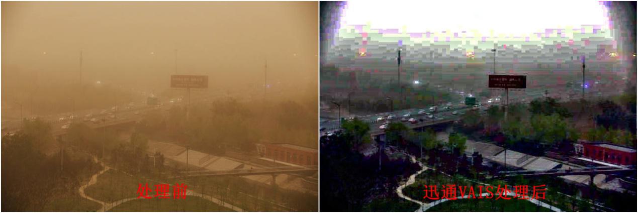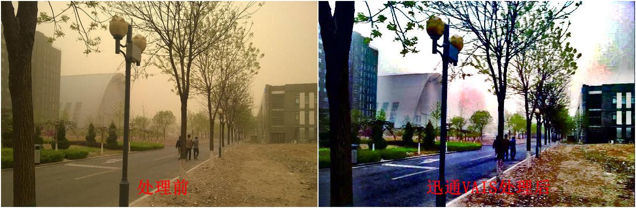 据了解,迅通VAIS是一款集成宽动态增强处理技术、超分辨率重建技术、去雾增强处理技术三大视频图像处理模块的视频图像处理软件。该软件可在无需增加系统前端投入费用的情况下,广泛应用于恶劣环境下的监控视频图像处理,提升画面质量,提供图像、视频智能分析与优化处理。通过迅通VAIS软件对沙尘暴气候条件下的视频图像进行处理,改善黄沙环境下的视频图像品质,还原图像视频信息,获取有效的图像信息。
