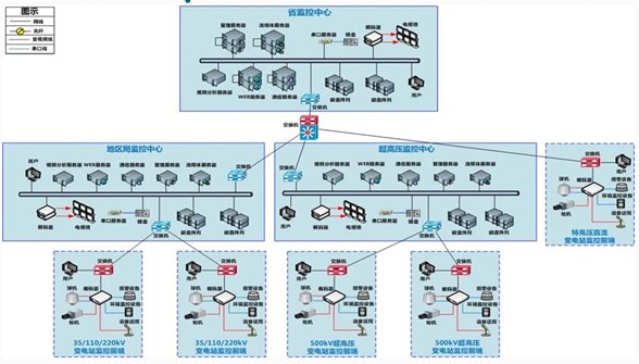 第三级是第二级的深化,其各个组成设备及所承担的功能与第二级基本一样,只是其管理的范围要比第二级更广:站地市监控中心相关设备只负责本地市范围内的变电站图像监视任务,省地市网络用户端相关设备负责全省范围内所有变电站的图像监视任务。