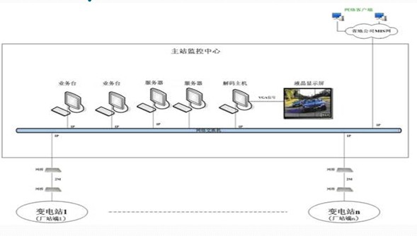 网络交换机负责与变电站端实现网络连接,便于接收站端上传的视频及数据。在对显示功能要求较高的时候,还可以配备电视墙、液晶显示屏、解码主机等设备。
